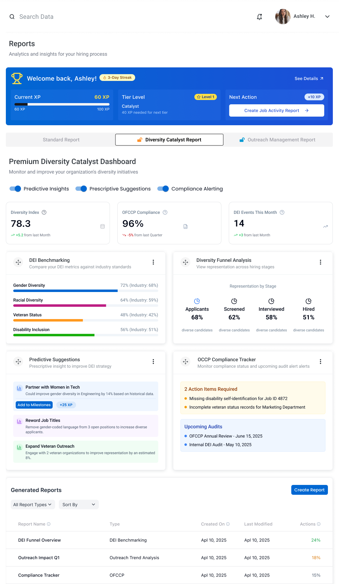 Hiring pipelines are less predictable than they appear. Applicant volumes shift with the seasons, with how a job description is worded, with the radius of a search. One of the first things I designed to address this was the Outreach Impact dashboard, a reporting tool that let HR teams track the effectiveness of their hiring strategies at a glance, spotting trends across applicant volume, description performance, and sourcing channels quarter over quarter. For the first time, our customers could see what was working and why.