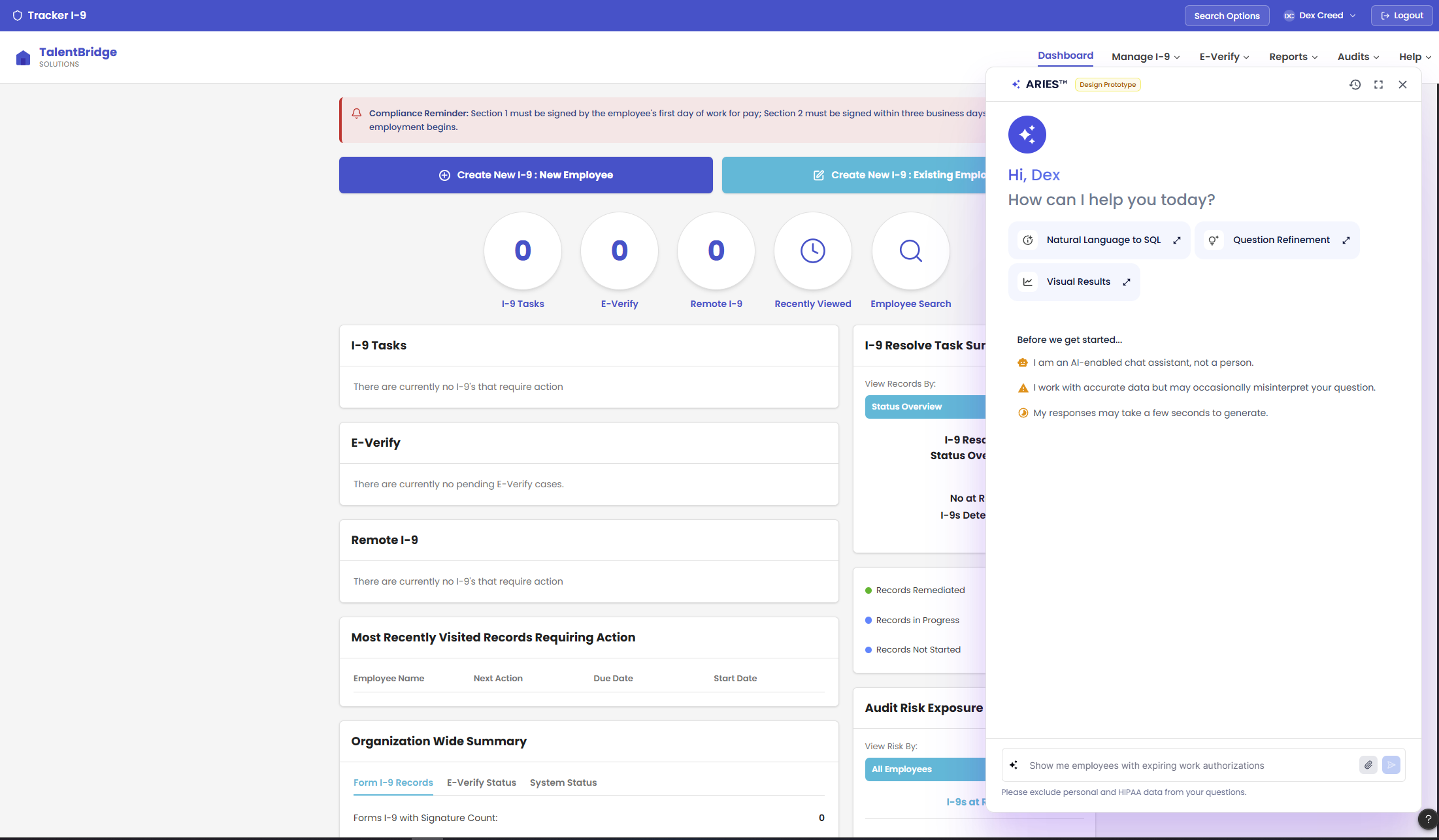 ARIES began as an answer to that specific frustration. The earliest proof of concept was a chat-bot that answered HR compliance questions by querying our internal database, bypassing users’ frequent manual searches for information. It was a small change in surface area with a large change in experience. Users noticed immediately. More importantly, so did we. If a single agentic intervention could reduce that much friction in one corner of the product, the same approach could work anywhere.